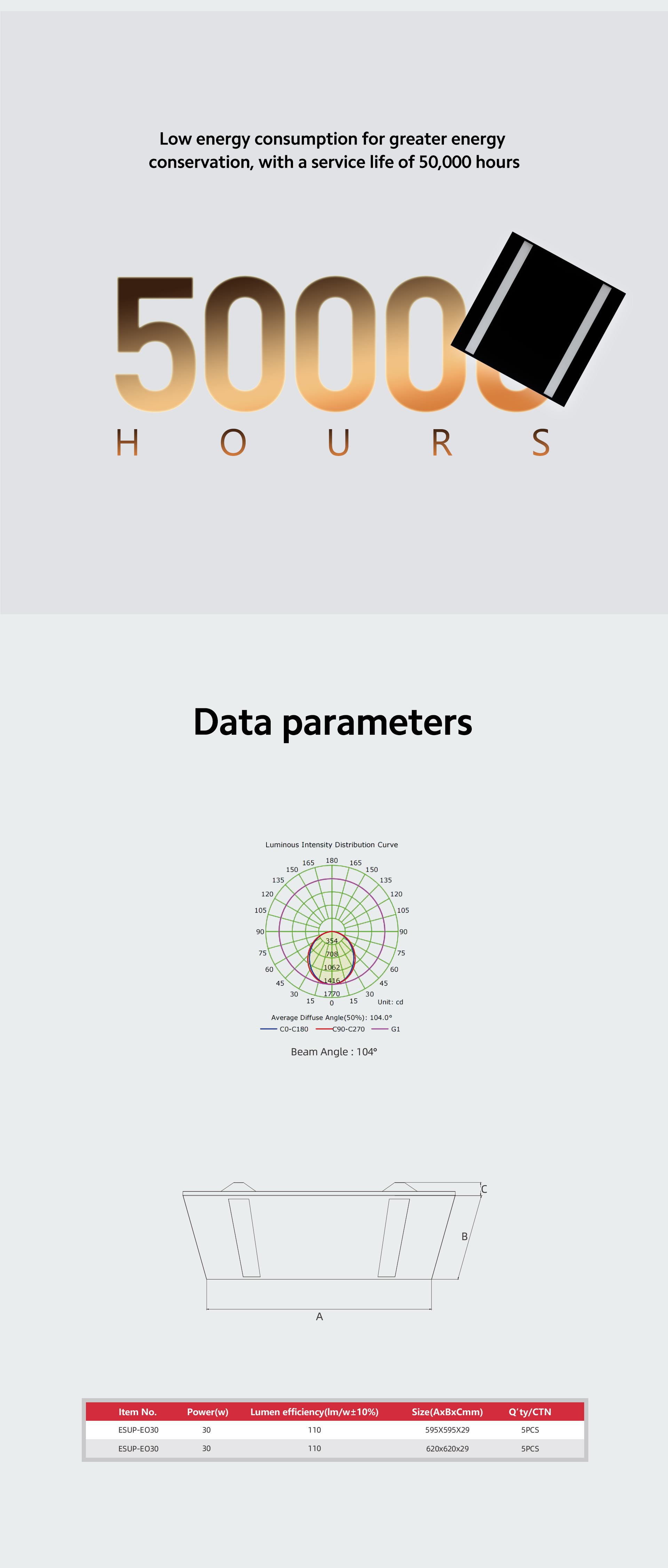 EOS panel light with special size prismatic or opal diffuser and different from normal panel lights,improving the competitiveness of this product.
